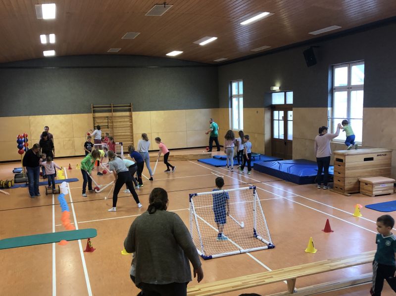 In der Mitte der Halle gab es sogar noch Platz für ein Hockeyspielfeld. Um die Sicherheit Aller zu gewährleisten, wurde nur mit weichen Bällen gespielt.