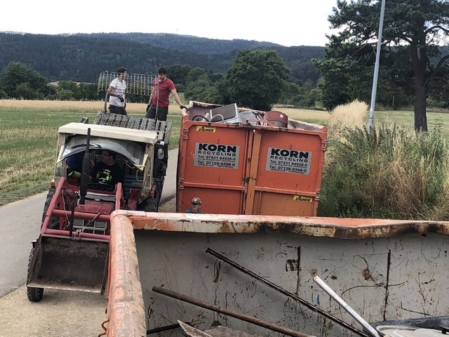 An dieser Stelle möchten wir uns nun noch einmal bei allen anwesenden Helfern und Helferinnen für die tolle Zusammenarbeit bedanken. In diesem Jahr haben geholfen: Marius Heim, Helmut Gaiser, Michael Witte, Rolf Bregenzer, Michael Pfister, Christian Eisele, Bernd Gaiser, Franzl Miller, Philipp Zillhart, Pascal Kloss, Daniel Bregenzer, Dennis Griener, Cornelius Sauter, Patrick Pfister, Patric Rieber, Unsere Jugend: Jonas Erdmann, Felix Gaiser, Oliver Steinhart, Tamara und Michele Uttenweiler, und Sandra Bregenzer mit Tim und Nico & Nicole fürs Vesper organisieren. Es war ein sonniger, anstrengender und turbulenter Alteisentag.