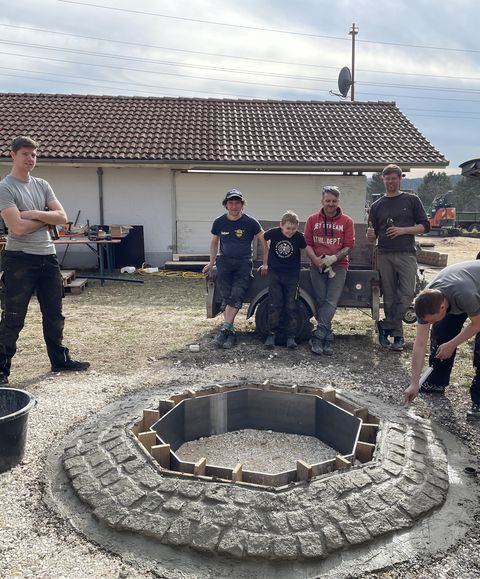 Rund ums Häusle wurden wieder einige Arbeiten erledigt: Die Grillstelle im hinteren Bereich wurde die letzten Jahre etwas in Mitleidenschaft gezogen. Dank der Firma Metallbau Ott aus Hettingen, haben wir nun eine neue stabile Grillstelle. Unser Grillbau-Team. Hat den Untergrund befestigt. Die Metalleinfassung eingesetzt und rund um die Grillstelle wurden Pflastersteine verlegt. Die Pflastersteine haben wir gespendet bekommen.