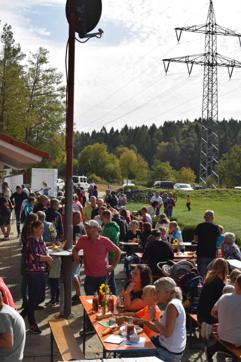 Zum Mittagessen gab es für die vielen mit dem Rad angereisten Biker, selbstgekochte Bio-Linsen. Herrn Johannes Abele von der Flurneuordnung Veringendorf, Bürgermeister Maik Rautenberg, Ortsvorsteher Michael Witte und Turnverein Vorstand Marius Heim eröffneten gegen 13 Uhr offiziell den Bike-Park.