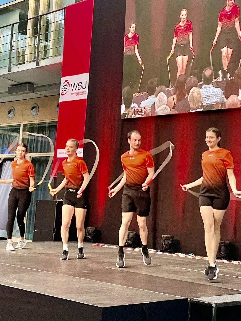 Im Anschluss durften wir der 5-Kopf starken Akapella-Band lauschen, die diese Veranstaltung eröffneten. Die erste Vorsitzende Anne Köhler erhielt für ihre langjährige Arbeit beim WSJ die silberne Ehrennadel. Da sie in der kommenden Wahlperiode für das aktuelle Amt nicht mehr zur Wahl steht. Unterhaltsam ging es mit dem Diabolo Künstler Kevin Knoche und den Rope Skipping Sportlern weiter. Amelie Kühne konnte uns einen Einblick in ihre Faszination zum Klettern, in den Bergen von Grönland geben. Man bekam bereits durch die Bilder Höhenangst.