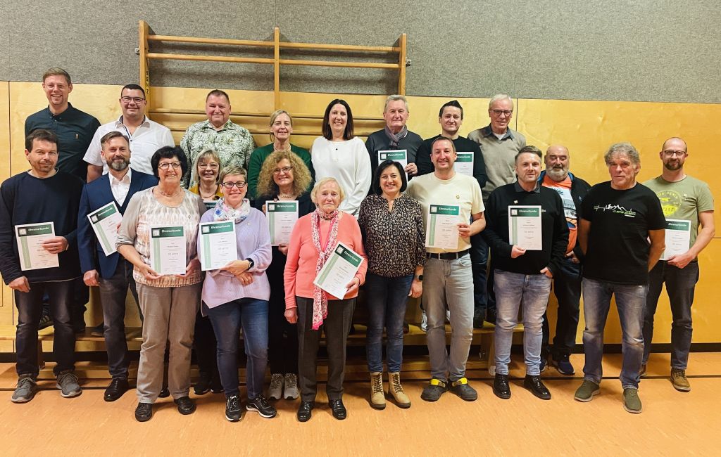 Besonders begrüßt wurde, BM Rautenberg, OV Witte, Rolf Münzer vom Turngau Hohenzollern, die anwesenden Ortschafts- und Stadträte, die Vertreter der örtlichen Vereine und die Ehrenmitglieder; Carmen Grom, Albert Blau und Roland Haug. In einer Gedenkminute an die Verstorbenen des Vereins, dachte man insbesondere an: Frida Steinhart.