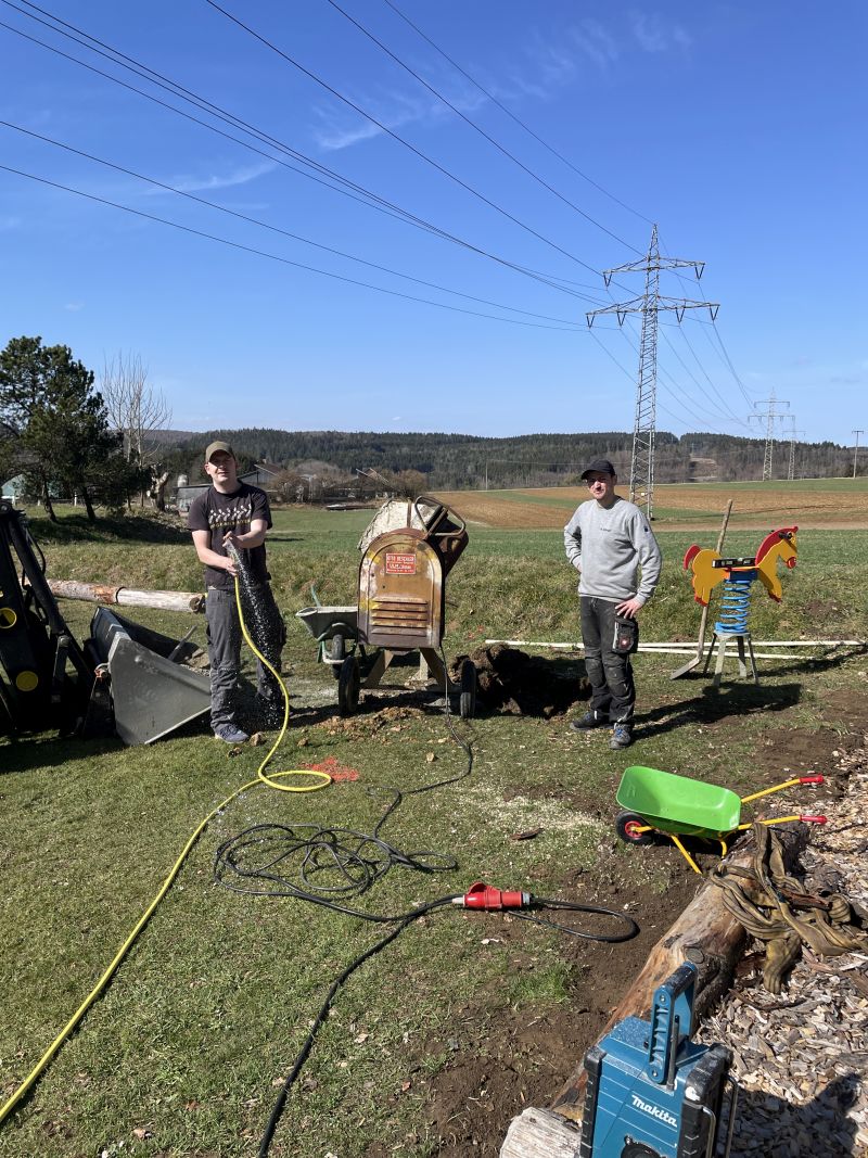 Strom- und Wasserkastenverteiler wurde versetzt, da dieser im vorherigen Jahr leider durch ein Fahrzeug angefahren und beschädigt worden ist. Neue Stromleitungen wurden verlegt. Wasserleitungen gezogen. Kleine schadhafte Stellen rund um das Häusle wurden repariert.