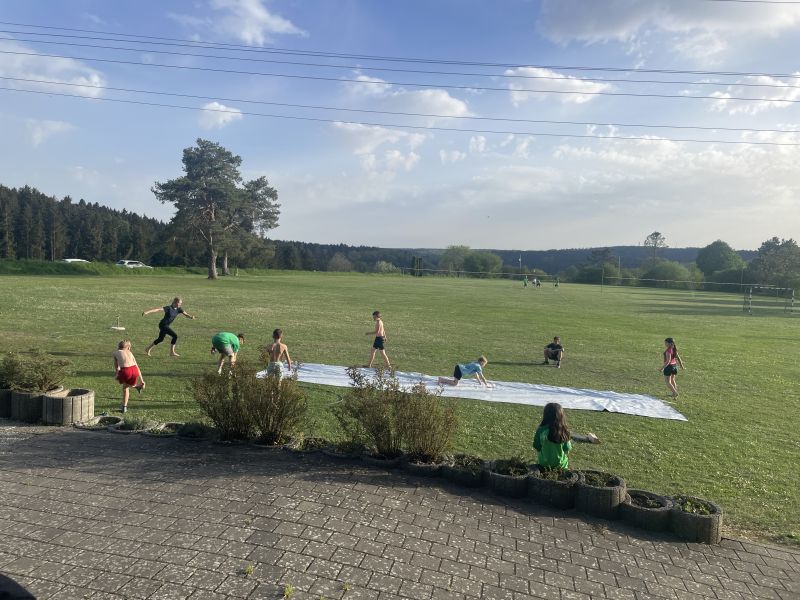 Am Freitag, den 2. Mai, lud der TV Veringendorf seine Jugendspieler zu einem Trainingstag auf dem Sportplatz in Veringendorf ein. Die Jugendtrainer Rolf Bregenzer, Heiko Brehm und Christian Eisele starteten um 14 Uhr mit dem Trainingsprogramm. Nachdem die Grundlagen gefestigt wurden, gab es noch ein Kleinfeldturnier mit altersgemischten Teams. Die nachfolgende Pause nutzten die Kinder, indem sie sich auf der aufgebauten Wasserrutsche austobten. Es folgte die zweite Trainingseinheit. Anschließend ließ man den Abend mit gemeinsamen Grillen auf dem Sportplatz ausklingen. Insgesamt nahmen 19 Jugendliche und 7 Betreuer an dem Trainingstag teil.