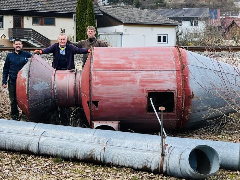 2 Traktoren mit Arbeitern, machten sich auf, um das bereitgestellte Alteisen im Ort einzusammeln. Es kam eine beträchtliche Menge zusammen. Insgesamt wurden zwei Container mit Alteisen gefüllt. Das Highlight in diesem Jahr, war die von uns genannte „Rakete“. Wir wollten sie aufheben für die Hallendeko beim Turnerball im nächsten Jahr. Aber leider passt sie nicht durch die Tür- oder Fensteröffnungen.