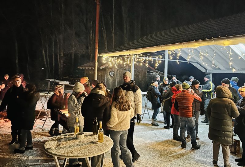 Anschließend machte man sich auf Richtung Höhensportplatz. Wo das leuchtend dekorierte Häusle bereits auf die Ankommenden wartete.
